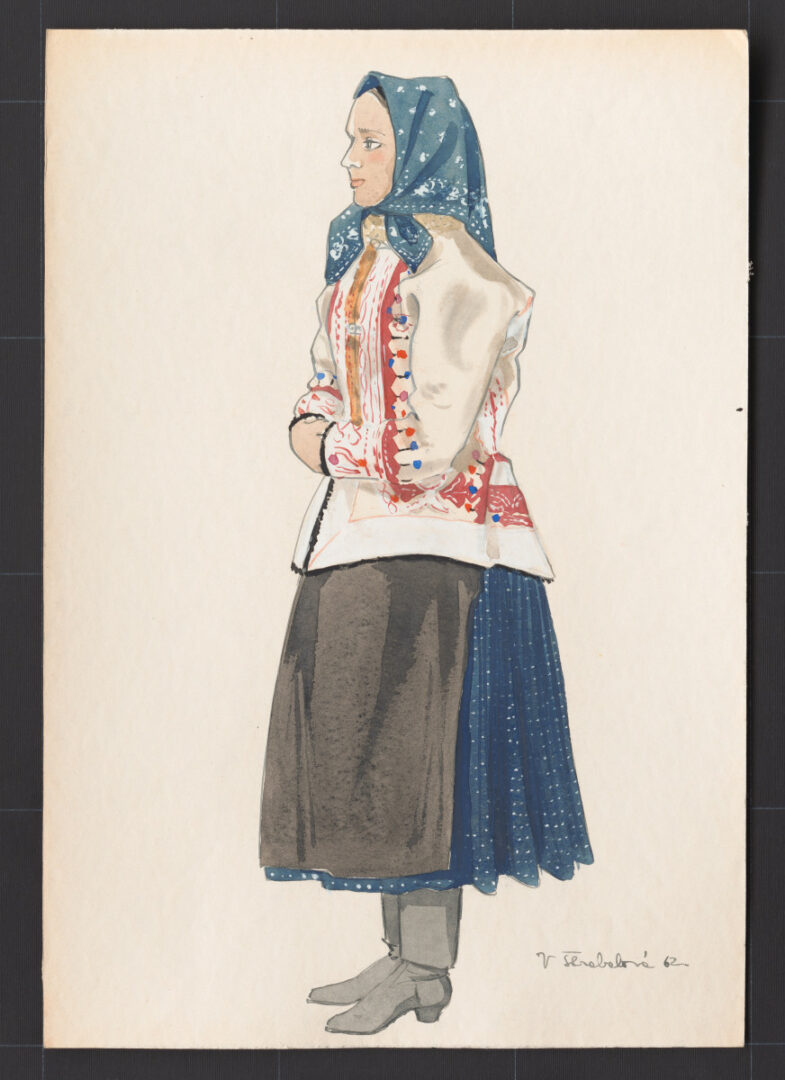 Viera Škrabalová-Líčeníková bola výraznou slovenskou textilnou výtvarníčkou so širokým záberom tvorivých činností. V rámci pôsobenia v ÚĽUV-e sa Viera Škrabalová-Líčeníková venovala aj odevnej návrhárskej tvorbe. Kresbové návrhy módneho oblečenia nesú v sebe výzdobné prvky ľudového odevu ako sú výšivka alebo čipka, inšpiráciou bolo tiež tvarové riešenie ľudových odevných súčiastok. Kresby dokumentujú situáciu 50-tych rokov 20. storočia, kedy ÚĽUV úzko spolupracoval s vyšívačskými, čipkárskymi či modrotlačovými výrobnými družstvami. Touto spoluprácou medzi družstvami a návrhovými dielňami vzniklo niekoľko hodnotných modelov, ktoré prešli aj do bežnej výroby.