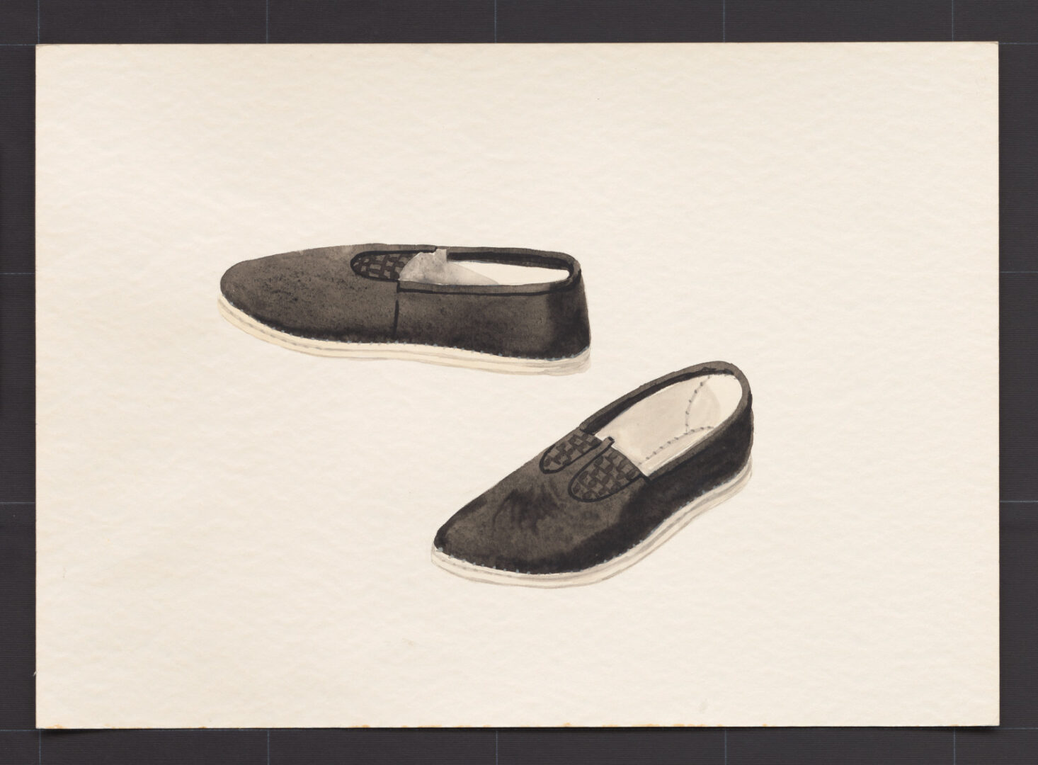 Ženské papuče, Horná Poruba, druhá štvrtina 20. storočia. Papuče (habatky) sú ušité z čierneho súkna podšitého konopným plátnom. Z viacerých prešitých vrstiev konopného plátna je aj podošva. Pôvodne sa papuče vpredu uväzovali šnúrkou, ktorú postupne vymenil pás čiernej gumy, dobre priliehajúcej k nohe. Papuče tohto druhu sa začali nosiť začiatkom 20. storočia. Nosili ich ženy vo všedné dni, najmä v lete.