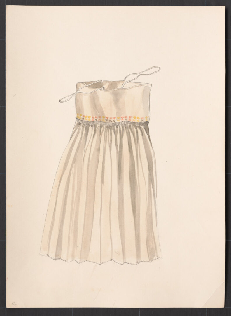 Súbor kresieb, ktoré sa nachádzajú v zbierke Múzea ľudovej umeleckej výroby, obsahuje najmä návrhy ženských denných a spoločenských šiat, tiež blúz. Súčasťou návrhov sú stručné popisy udávajúce materiál, strih a výzdobu odevov. Na zhotovenie šiat boli navrhované prírodné tkaniny – bavlnené, ľanové i hodvábne materiály.