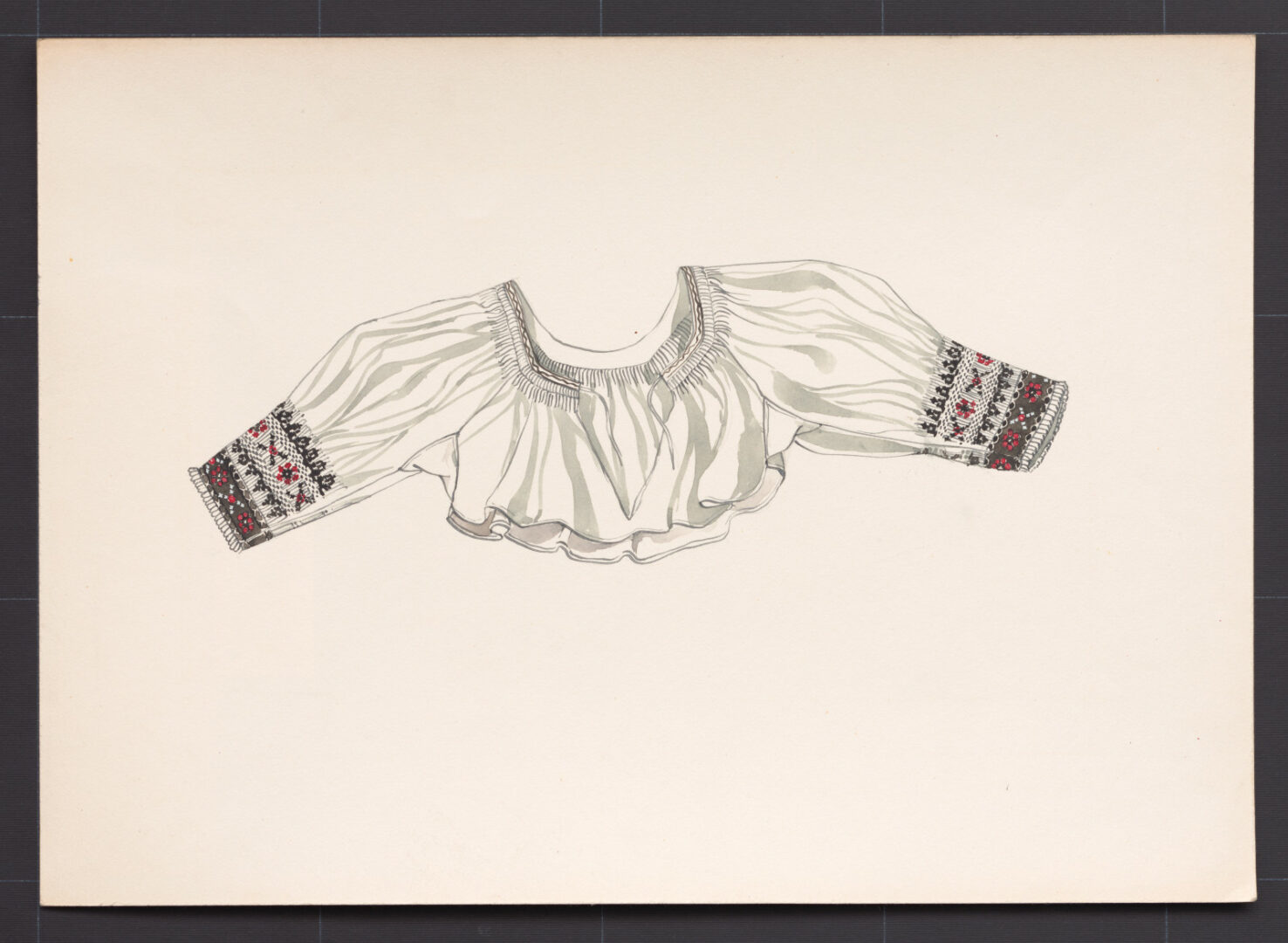 Rukávce na sviatočné dni, Dobrá Niva, začiatok 20. storočia. Rukávce (oplečko) sú ušité z domáceho ľanového alebo poloľanového plátna. Majú rovný strih, s rukávmi bokom prišitými k prednému a zadnému dielu. Horný okraj rukávov a oboch dielov je drobno nazberaný a všitý do úzkeho obalka. Aj dlné konce rukávov sú drobno nazberané a prešité viacerými pásikmi stehov cez zbery, ktoré dopĺňa široký vyšívaný pásik. Všedné rukávce mali na rukávoch podstatne skromnejšiu výzdobu.