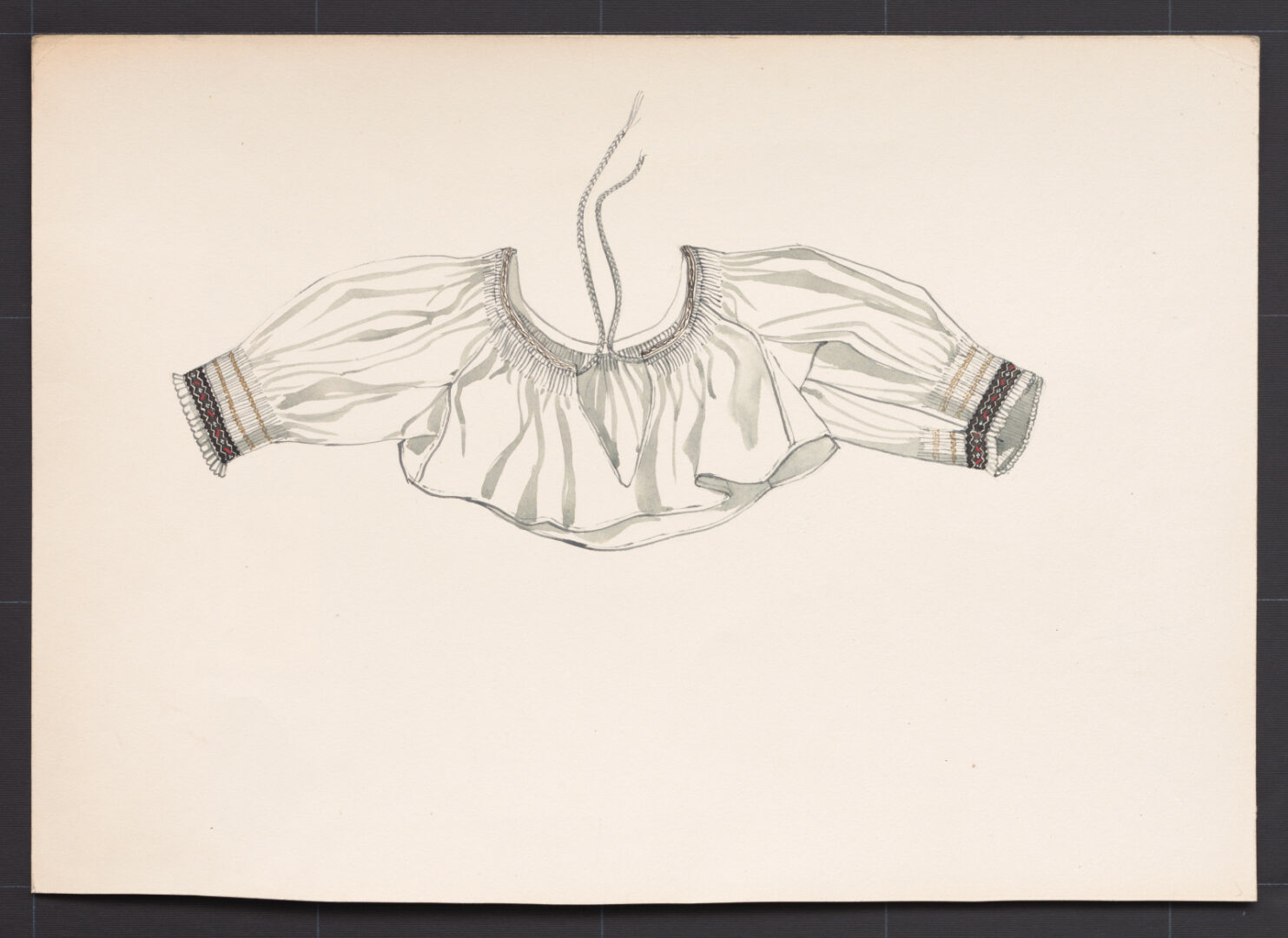 Rukávce na všedné dni. Dobrá Niva, začiatok 20. storočia. Rukávce (oplečko) sú ušité z domáceho ľanového alebo poloľanového plátna. Majú rovný strih, s rukávmi bokom prišitými k prednému a zadnému dielu. Horný okraj rukávov a oboch dielov je drobno nazberaný a všitý do úzkeho obalka. Aj dolné konce rukávov sú drobno nazberané a prešité dvomi pásikmi stehov cez zbery, ktoré dopĺňa úzky vyšívaný pásik. Rukávce so skromnou výzdobou patrili aj k smútočnému odevu. Sviatočné rukávce mali na rukávoch podstatne širšiu výzdobu.