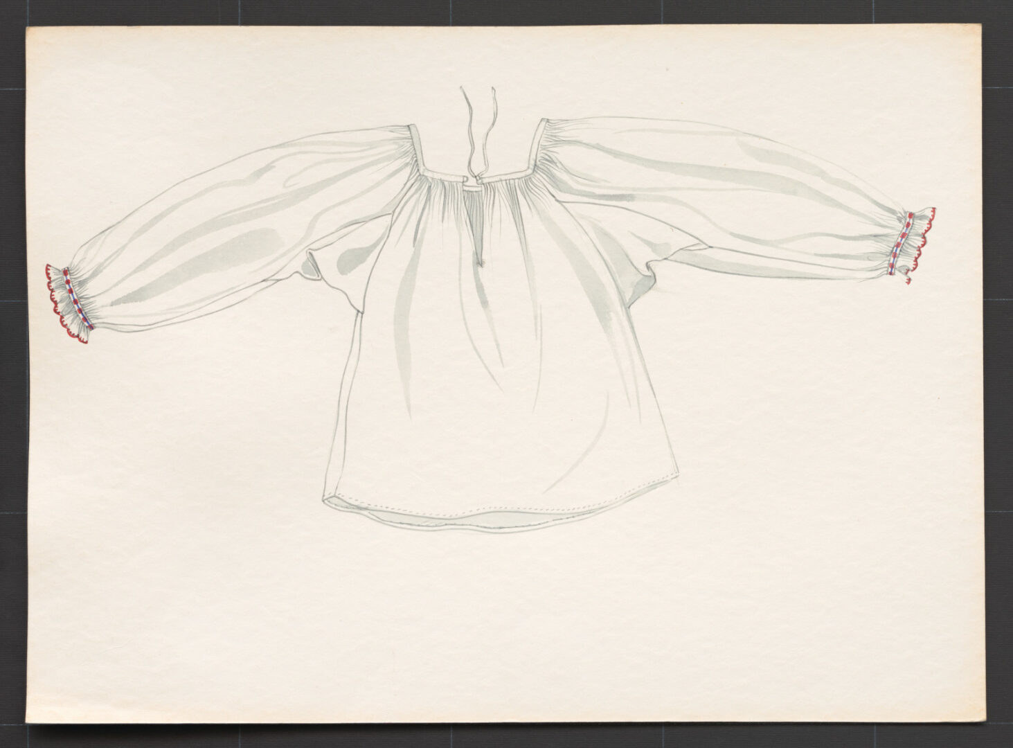 Rukávce, Zázrivá, začiatok 20. storočia. Rukávce (oplecko s rojdičkami) majú driek i rukávy ušité z bavlneného plátna. Majú rovný strih s bokom prišitými rukávmi. Siahajú do výšky bokov. Rukávy sú dlhé po zápästia, ich konce sú všité do krátkych taclí, rojdičiek. Predstavujú jednu z dvoch foriem rukávcov, ktoré sa nosili začiatkom 20. storočia vo všedné i sviatočné dni. Druhou formou boli rukávce s manžetami, oplecko s golierikmi.