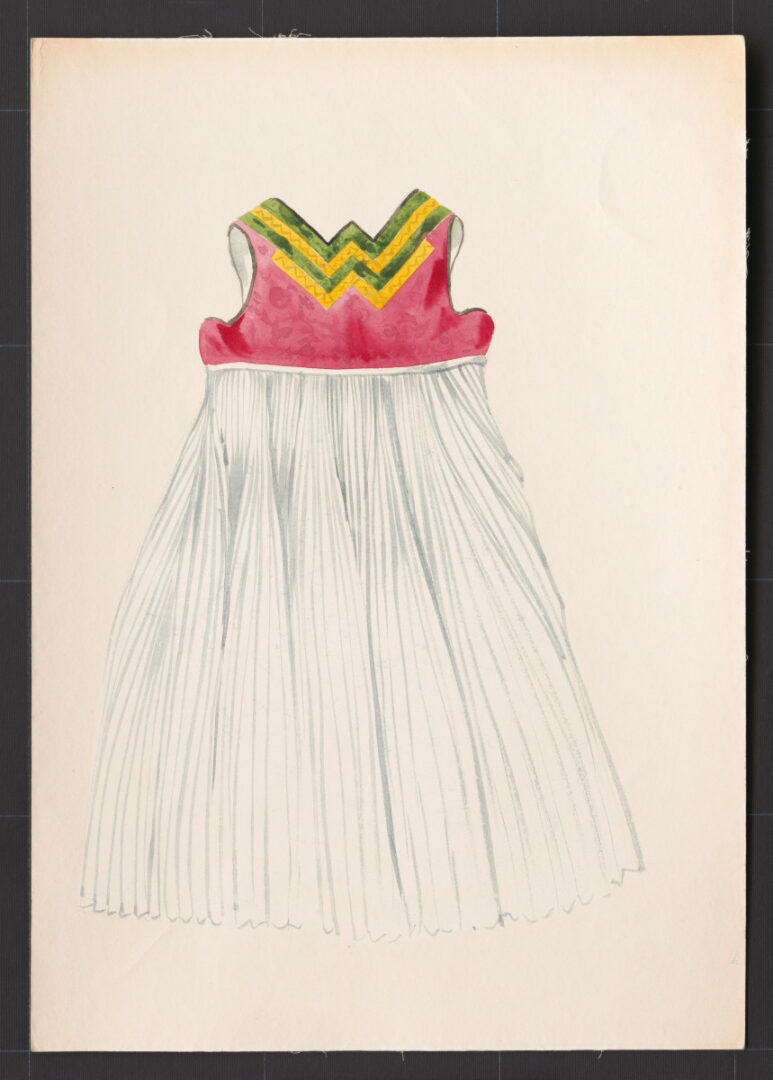 Súbor kresieb, ktoré sa nachádzajú v zbierke Múzea ľudovej umeleckej výroby, obsahuje najmä návrhy ženských denných a spoločenských šiat, tiež blúz. Súčasťou návrhov sú stručné popisy udávajúce materiál, strih a výzdobu odevov. Na zhotovenie šiat boli navrhované prírodné tkaniny – bavlnené, ľanové i hodvábne materiály.