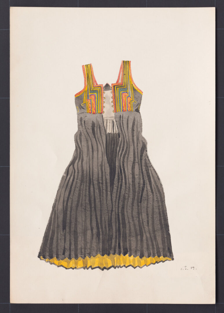 Súbor kresieb, ktoré sa nachádzajú v zbierke Múzea ľudovej umeleckej výroby, obsahuje najmä návrhy ženských denných a spoločenských šiat, tiež blúz. Súčasťou návrhov sú stručné popisy udávajúce materiál, strih a výzdobu odevov. Na zhotovenie šiat boli navrhované prírodné tkaniny – bavlnené, ľanové i hodvábne materiály.