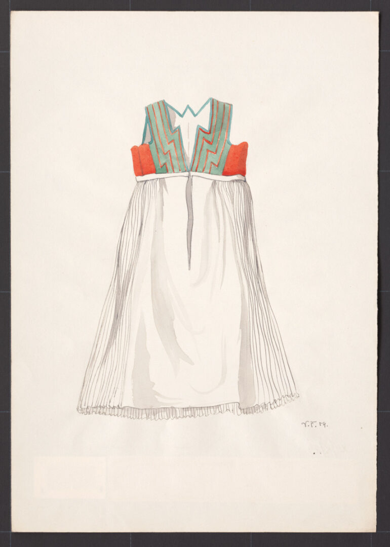 Súbor kresieb, ktoré sa nachádzajú v zbierke Múzea ľudovej umeleckej výroby, obsahuje najmä návrhy ženských denných a spoločenských šiat, tiež blúz. Súčasťou návrhov sú stručné popisy udávajúce materiál, strih a výzdobu odevov. Na zhotovenie šiat boli navrhované prírodné tkaniny – bavlnené, ľanové i hodvábne materiály.