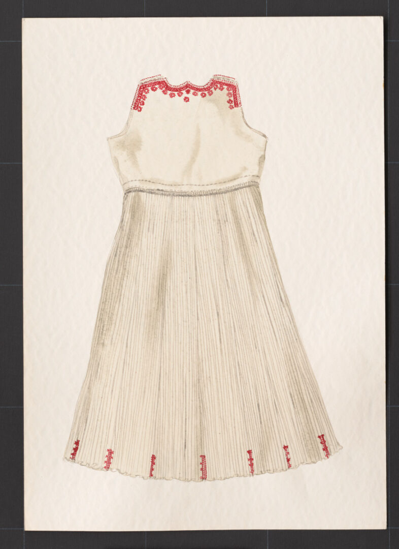Súbor kresieb, ktoré sa nachádzajú v zbierke Múzea ľudovej umeleckej výroby, obsahuje najmä návrhy ženských denných a spoločenských šiat, tiež blúz. Súčasťou návrhov sú stručné popisy udávajúce materiál, strih a výzdobu odevov. Na zhotovenie šiat boli navrhované prírodné tkaniny – bavlnené, ľanové i hodvábne materiály.