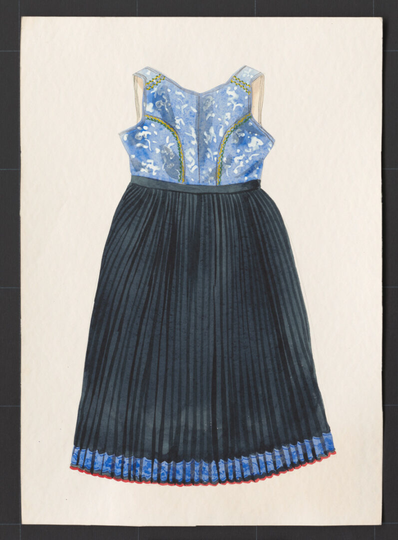 Súbor kresieb, ktoré sa nachádzajú v zbierke Múzea ľudovej umeleckej výroby, obsahuje najmä návrhy ženských denných a spoločenských šiat, tiež blúz. Súčasťou návrhov sú stručné popisy udávajúce materiál, strih a výzdobu odevov. Na zhotovenie šiat boli navrhované prírodné tkaniny – bavlnené, ľanové i hodvábne materiály.