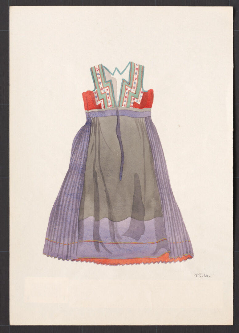 Súbor kresieb, ktoré sa nachádzajú v zbierke Múzea ľudovej umeleckej výroby, obsahuje najmä návrhy ženských denných a spoločenských šiat, tiež blúz. Súčasťou návrhov sú stručné popisy udávajúce materiál, strih a výzdobu odevov. Na zhotovenie šiat boli navrhované prírodné tkaniny – bavlnené, ľanové i hodvábne materiály.