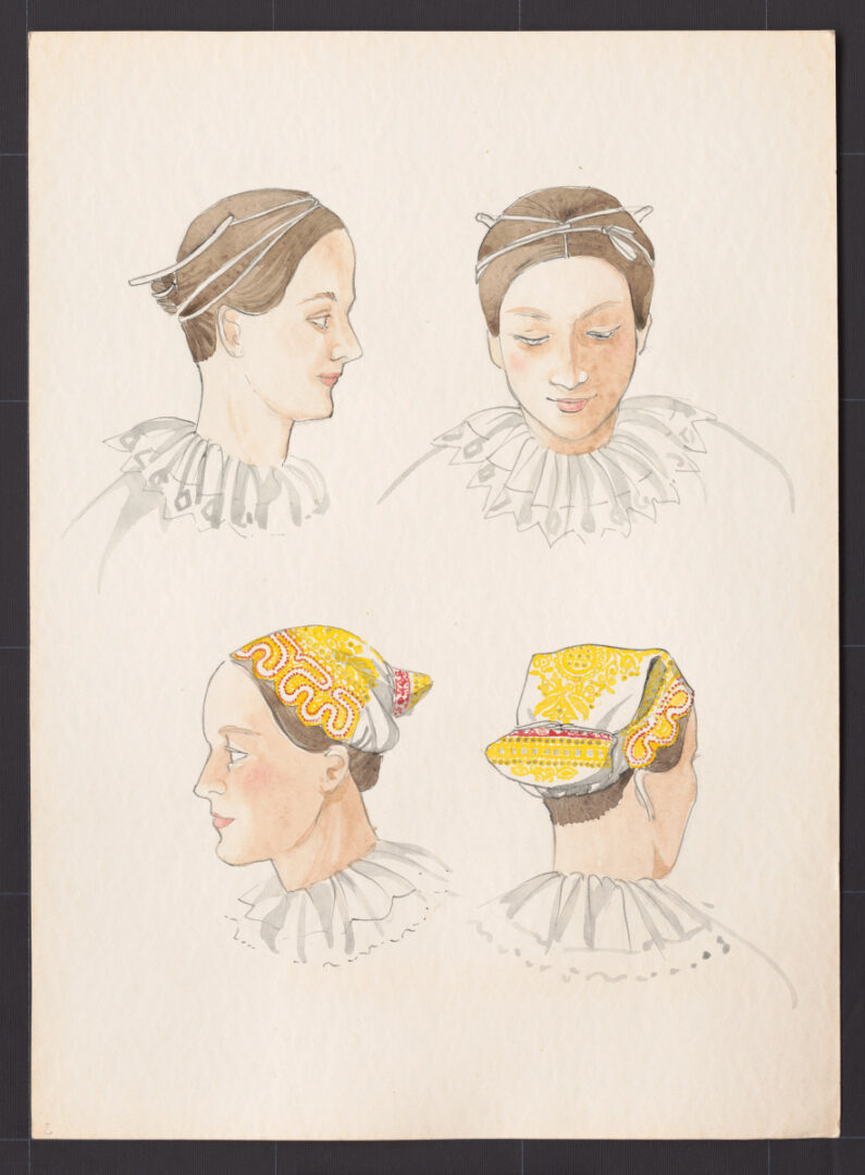 Kresba – účes ženský a úprava čepca na hlave