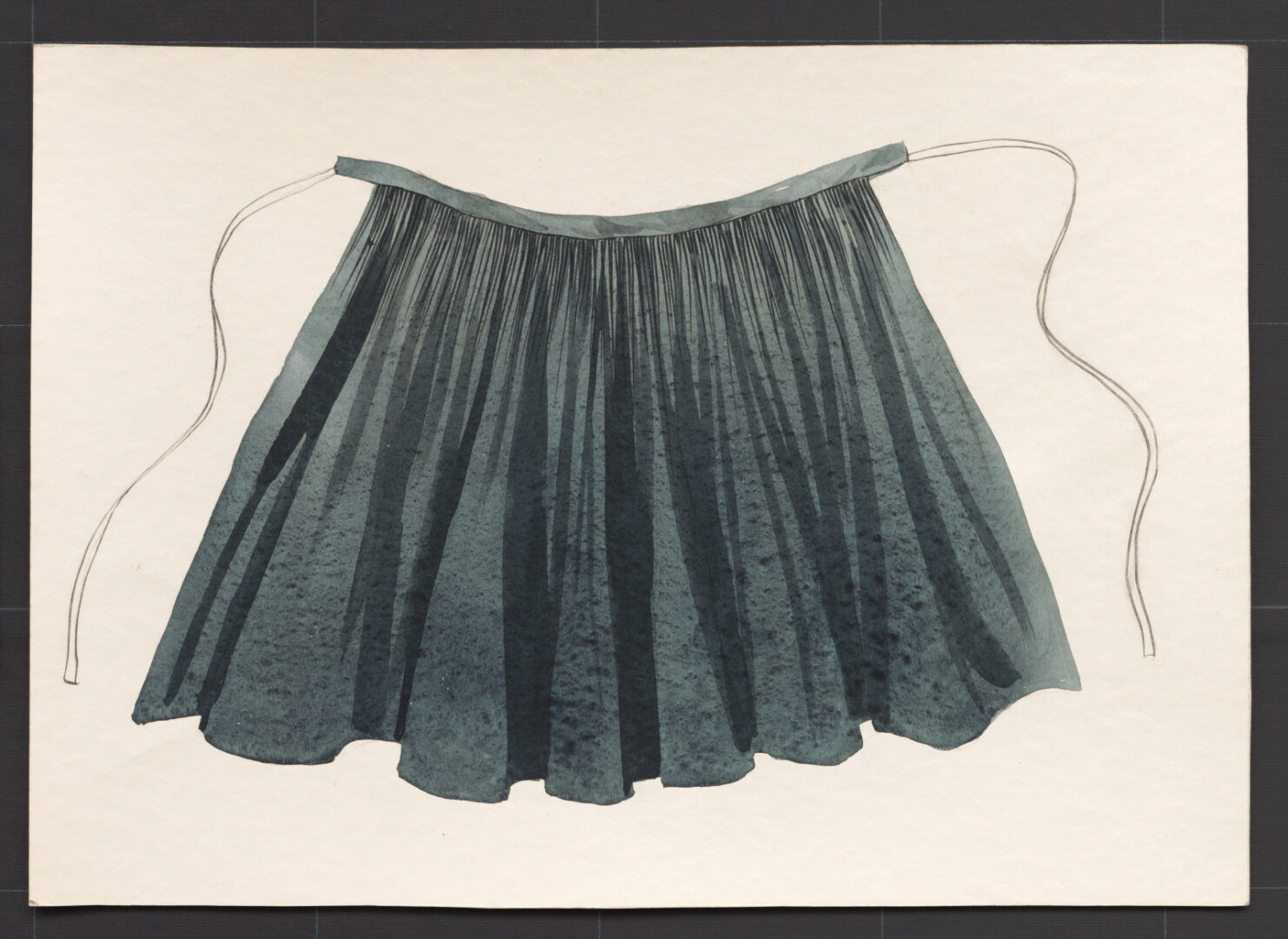 Zástera na všedné dni, Sečovská Polianka, prvá polovica 20. storočia. Zástera (fjertuch) je ušitá z dvoch pôl čierneho kartúnu, v páse je drobno naberaná. V minulosti sa nosili aj všedné zástery z jednej poly. Taká zástera sa nazývala šurc. Zástery na sviatočné dni sa šili z čierneho glotu, neskôr aj z tenkého brokátu (pišušu). Sviatočné zástery boli drobno skladané po celej dĺžke a spodný okraj mali lemovaný buď čipkou, alebo pásikom strojovej výšivky.