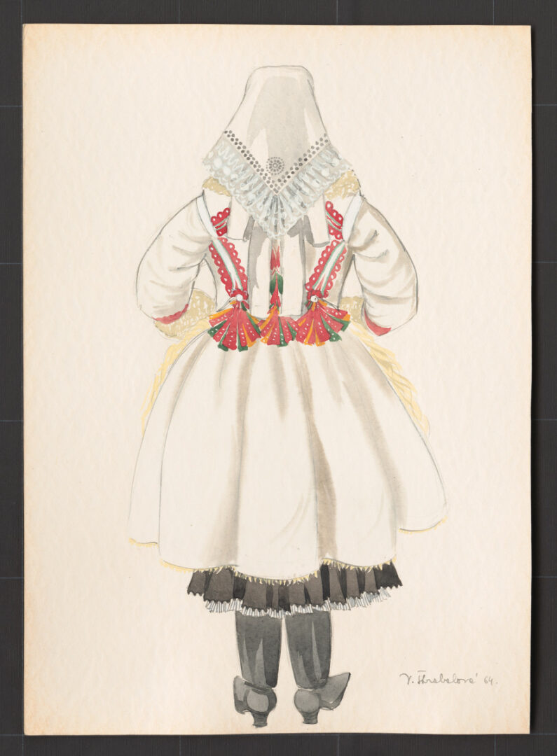 Viera Škrabalová-Líčeníková bola výraznou slovenskou textilnou výtvarníčkou so širokým záberom tvorivých činností. V rámci pôsobenia v ÚĽUV-e sa Viera Škrabalová-Líčeníková venovala aj odevnej návrhárskej tvorbe. Kresbové návrhy módneho oblečenia nesú v sebe výzdobné prvky ľudového odevu ako sú výšivka alebo čipka, inšpiráciou bolo tiež tvarové riešenie ľudových odevných súčiastok. Kresby dokumentujú situáciu 50-tych rokov 20. storočia, kedy ÚĽUV úzko spolupracoval s vyšívačskými, čipkárskymi či modrotlačovými výrobnými družstvami. Touto spoluprácou medzi družstvami a návrhovými dielňami vzniklo niekoľko hodnotných modelov, ktoré prešli aj do bežnej výroby.