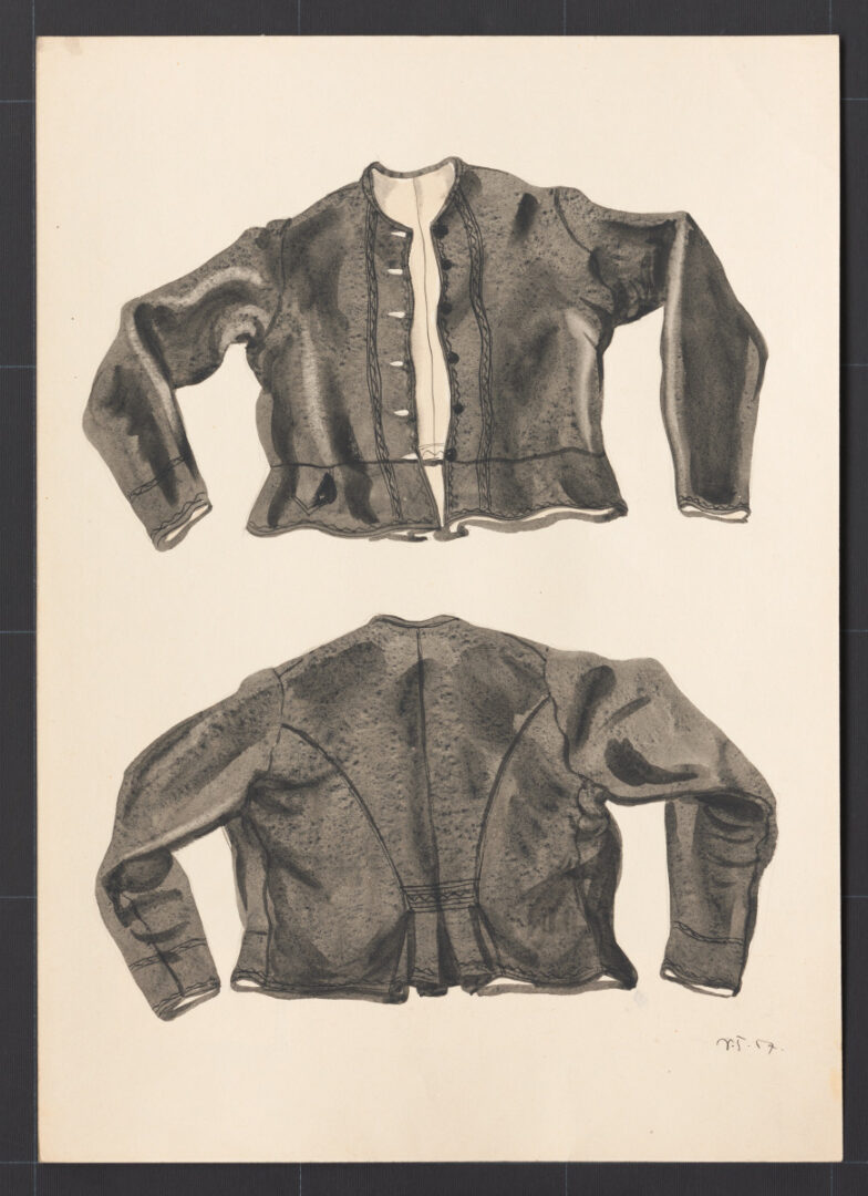 Ženský kabátik, Ábelová, začiatok 20. storočia. Kabátik je ušitý z čierneho kvalitného glotu a podšitý domácim konopným plátnom. Je bez goliera. Zapína sa drobnými gombičkami. Na pravom boku má našité malé vrecko. Kabátiky sa začali nosiť okolo roku 1890. Spočiatku sa nosili len vo všedný deň, od začiatku 20. storočia aj vo sviatok a do kostola. V polovici 20. storočia sa začali šiť i zo zamatu a z plyšu.