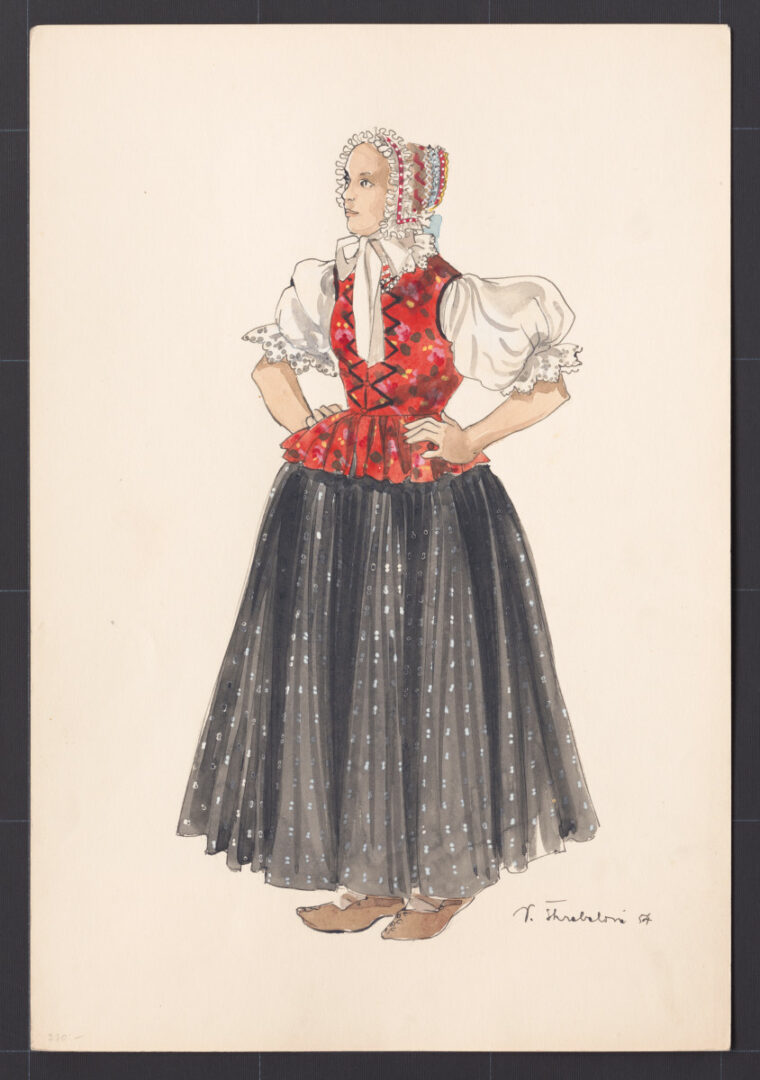 Súbor kresieb, ktoré sa nachádzajú v zbierke Múzea ľudovej umeleckej výroby, obsahuje najmä návrhy ženských denných a spoločenských šiat, tiež blúz. Súčasťou návrhov sú stručné popisy udávajúce materiál, strih a výzdobu odevov. Na zhotovenie šiat boli navrhované prírodné tkaniny – bavlnené, ľanové i hodvábne materiály.