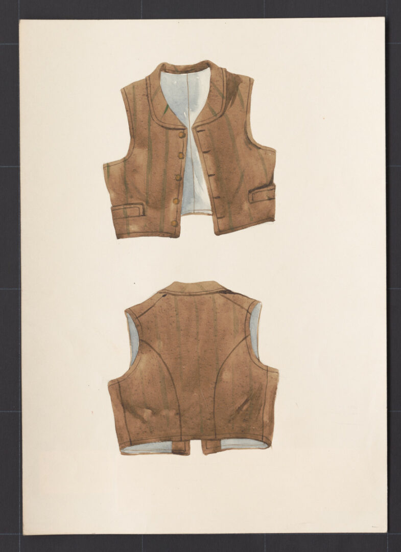 Lajblík, Bunetice, začiatok 20. storočia. Lajblík je ušitý z hnedej pásikavej vlnenej šatovej látky a podšitý je domácim keprom, drilichom. Lajblíky sa začali nosiť až začiatkom 20. storočia. Dovtedy muži nosili kožušteky. Ako prví ich začali nosiť slobodní mládenci.