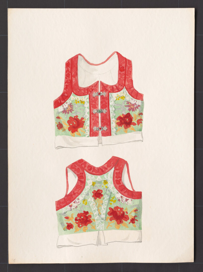 Súbor kresieb, ktoré sa nachádzajú v zbierke Múzea ľudovej umeleckej výroby, obsahuje najmä návrhy ženských denných a spoločenských šiat, tiež blúz. Súčasťou návrhov sú stručné popisy udávajúce materiál, strih a výzdobu odevov. Na zhotovenie šiat boli navrhované prírodné tkaniny – bavlnené, ľanové i hodvábne materiály.