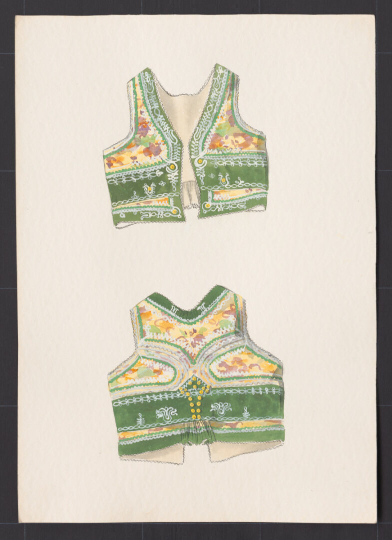 Súbor kresieb, ktoré sa nachádzajú v zbierke Múzea ľudovej umeleckej výroby, obsahuje najmä návrhy ženských denných a spoločenských šiat, tiež blúz. Súčasťou návrhov sú stručné popisy udávajúce materiál, strih a výzdobu odevov. Na zhotovenie šiat boli navrhované prírodné tkaniny – bavlnené, ľanové i hodvábne materiály.