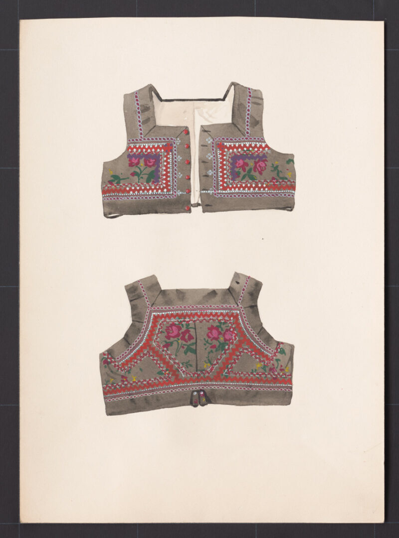 Súbor kresieb, ktoré sa nachádzajú v zbierke Múzea ľudovej umeleckej výroby, obsahuje najmä návrhy ženských denných a spoločenských šiat, tiež blúz. Súčasťou návrhov sú stručné popisy udávajúce materiál, strih a výzdobu odevov. Na zhotovenie šiat boli navrhované prírodné tkaniny – bavlnené, ľanové i hodvábne materiály.