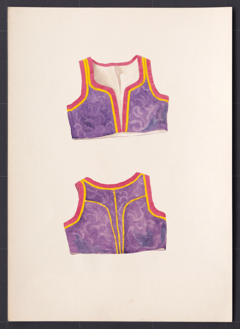 Súbor kresieb, ktoré sa nachádzajú v zbierke Múzea ľudovej umeleckej výroby, obsahuje najmä návrhy ženských denných a spoločenských šiat, tiež blúz. Súčasťou návrhov sú stručné popisy udávajúce materiál, strih a výzdobu odevov. Na zhotovenie šiat boli navrhované prírodné tkaniny – bavlnené, ľanové i hodvábne materiály.