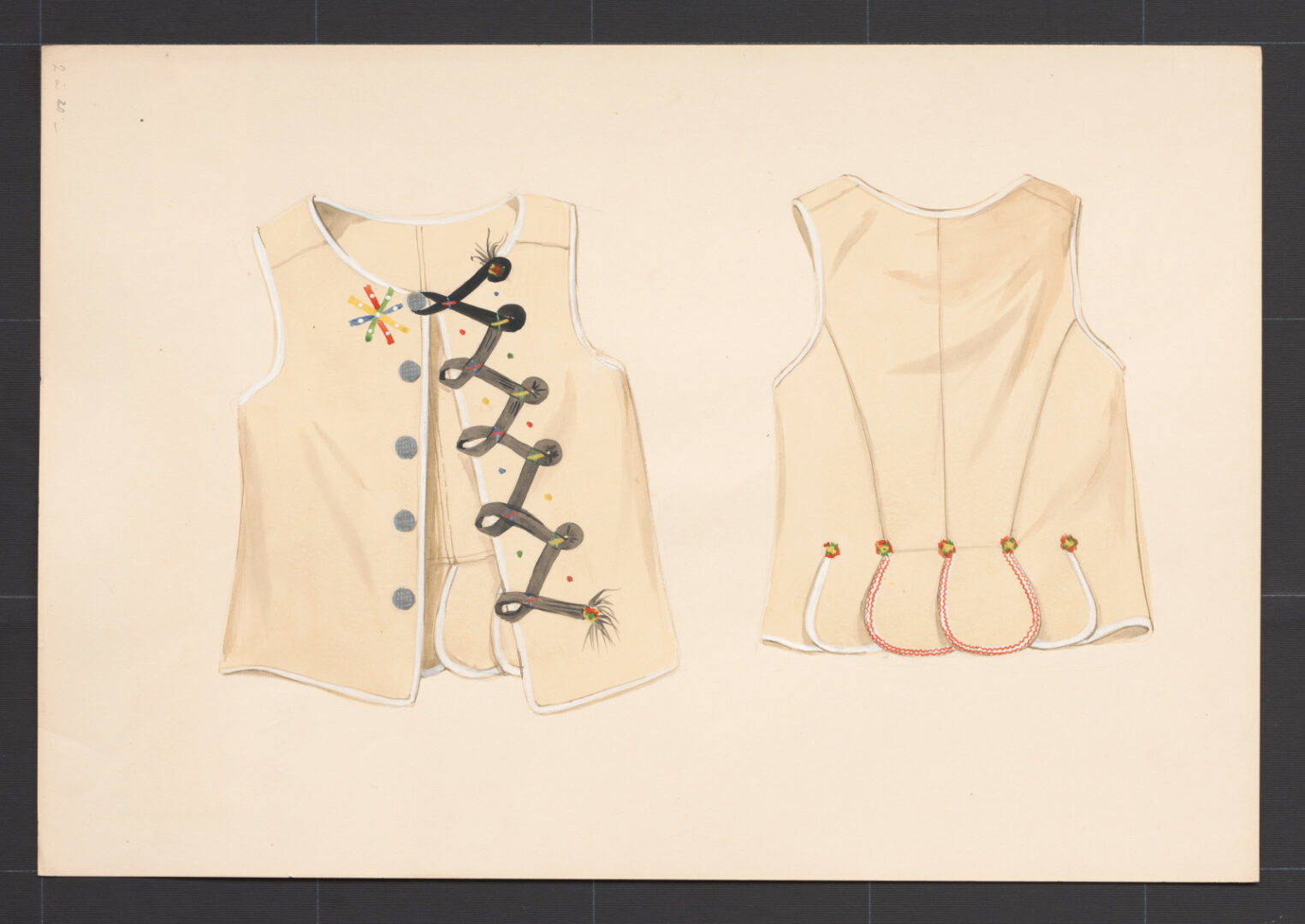 Živôtik, Bzovík, začiatok 20. storočia. Živôtik (prusliak) je ušitý z jemného z továrenského bieleho súkna. Strihaný je do pása, so štyrmi jazykovými šosíkmi na zadnej strane. Zapína sa na väčšie sklenené gombíky a slučky z čiernej harasovej stužky. Súkenný živôtik si pôvodne obliekali len mladé ženy, kým nemali deti. Staršie ženy ho nosili ojedinele. V priebehu prvej štvrtiny 20. storočia sa prestal nosiť.