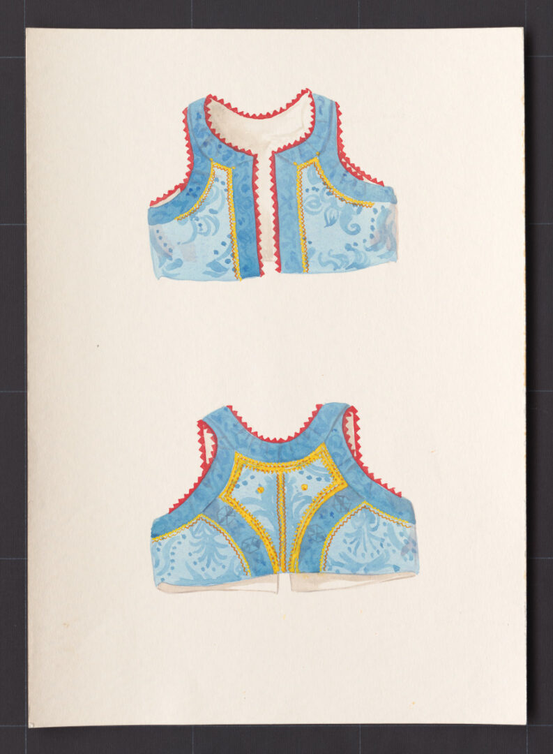 Súbor kresieb, ktoré sa nachádzajú v zbierke Múzea ľudovej umeleckej výroby, obsahuje najmä návrhy ženských denných a spoločenských šiat, tiež blúz. Súčasťou návrhov sú stručné popisy udávajúce materiál, strih a výzdobu odevov. Na zhotovenie šiat boli navrhované prírodné tkaniny – bavlnené, ľanové i hodvábne materiály.