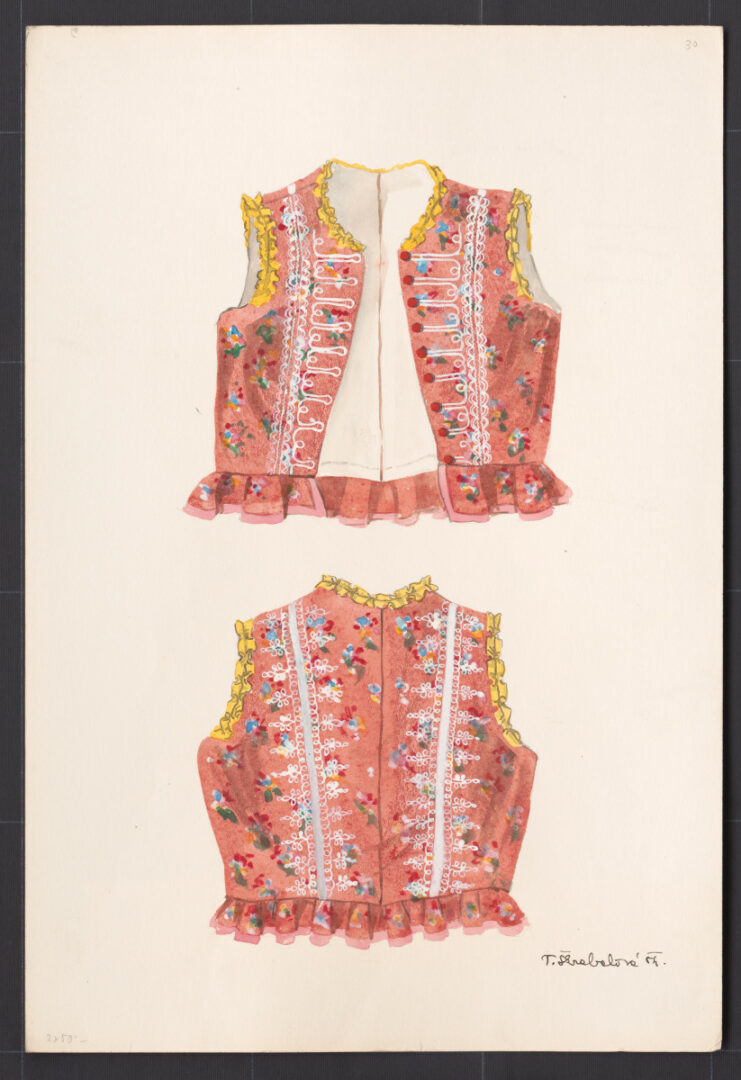 Súbor kresieb, ktoré sa nachádzajú v zbierke Múzea ľudovej umeleckej výroby, obsahuje najmä návrhy ženských denných a spoločenských šiat, tiež blúz. Súčasťou návrhov sú stručné popisy udávajúce materiál, strih a výzdobu odevov. Na zhotovenie šiat boli navrhované prírodné tkaniny – bavlnené, ľanové i hodvábne materiály.