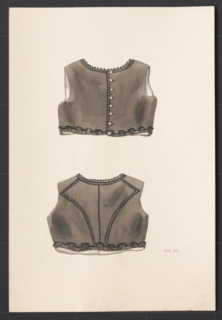 Živôtik, Rejdová, prvá štvrtina 20. storočia. Živôtik (kabát) je ušitý z čierneho glotu a podšitý hrubým domácim ľanovým plátnom. Zdobený je našitou čiernou krepinkou a harasovou stuhou. Živôtiky čiernej alebo tmavých farieb boli určené starším ženám. Mladšie ženy nosili tmavšie živôtiky len vo všedné dni.