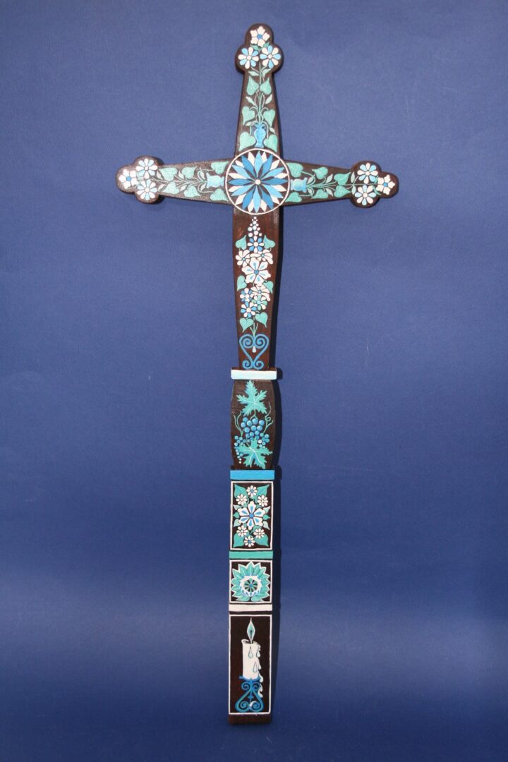 Detviansky vyrezávaný a maľovaný kríž je vyhotovený podľa pôvodných vzorov. Kríž je prírodný alebo morený na ktorom sú vymaľované rôzne motívy.