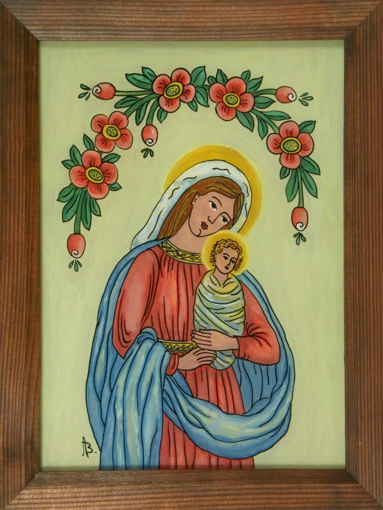 ÚĽUV / Výrobky / Maľba na sklo – Madona s dieťaťom