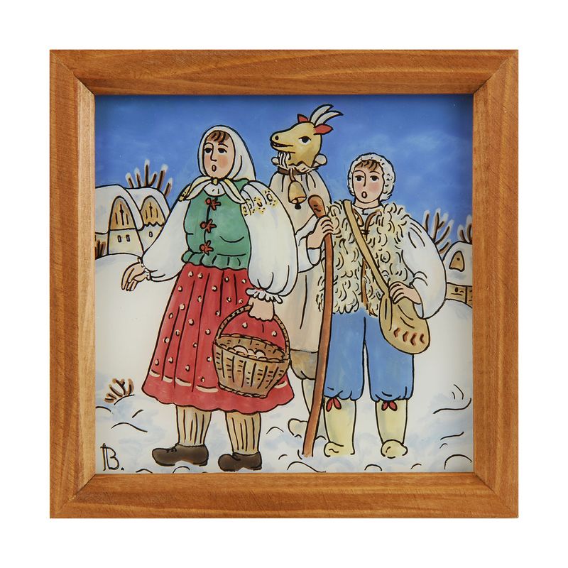 ÚĽUV / Výrobky / Maľba na sklo – „Koledníci s kozou“