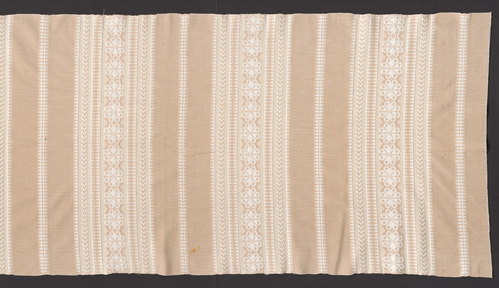 Tkanina ručne tkaná s preberanými vzormi z Važca. navrhla: Oľga Koreňová vyrobila: Mária Juríková, Važec rok vzniku 1979