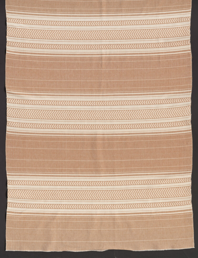 Tkanina ručne tkaná s preberanými motívmi z Važca. Navrhla: Oľga Koreňová Vyrobila: M. Juríková