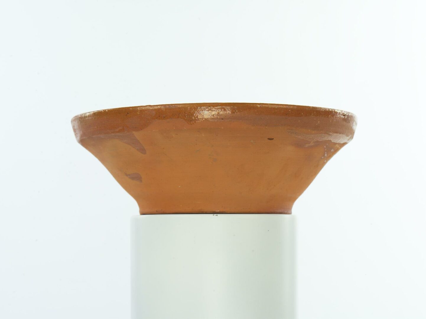 Misa z červenej hliny, točená na kruhu. Steny kónické, okraj zvislý. Dekor: na dne kruh vyplnený vlnovkami, na obvode stien pod okrajom pás vlnoviek. Dekor vytvorený tak, že na mokrý črep sa súvisle nanesie farba a stiera sa hrebeňom a brkom, paličkou, prázdnym rožkom. Dekor žltohnedý: biela farba prekrytá okrovou glazúrou.