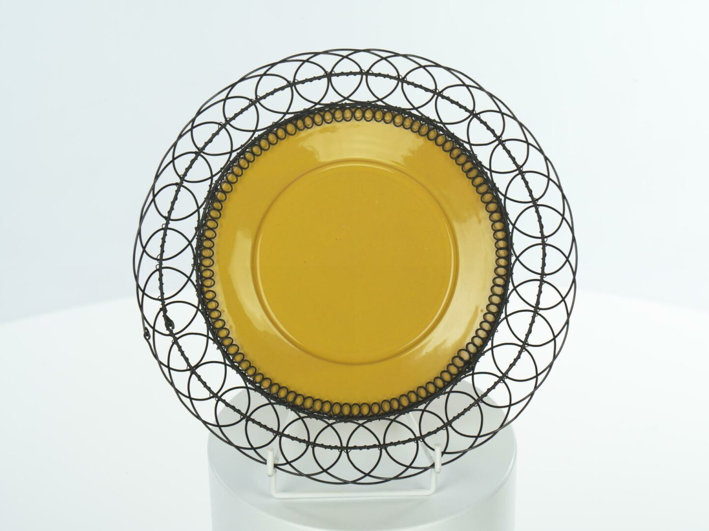 Misa keramická odrôtovaná. Misa z červenej hliny, točená na kruhu, bez dekoru, žltá glazúra. Okraj dekoratívne odrôtovaný. Bez značenia.