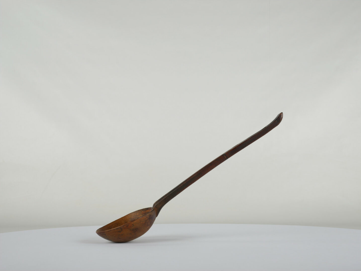 Naberačka zhotovená z listnatej dreviny, dlabanou technikou, bez výzdoby. Rúčka je v jednej tretine rozšírená s vyrezaným otvorom na zavesenie.