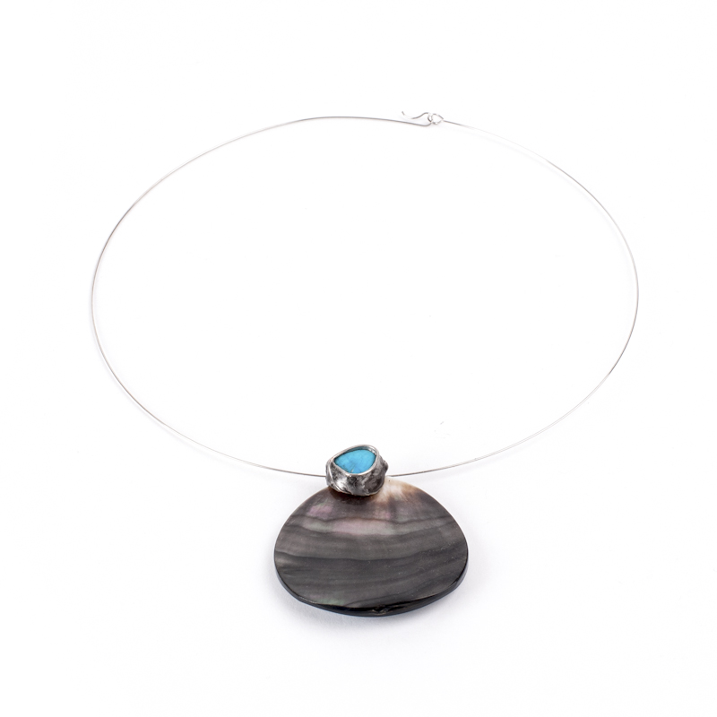 ÚĽUV / Výrobky / náhrdelník drôtený s perleťou a tyrkysom