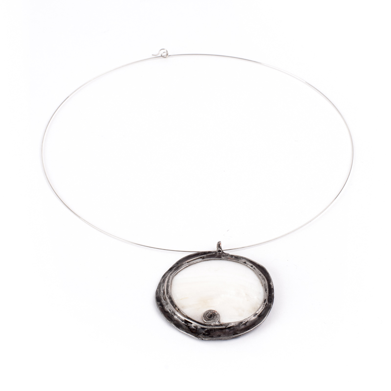 s bielou perleťou, umiestnenou do kovového rámu