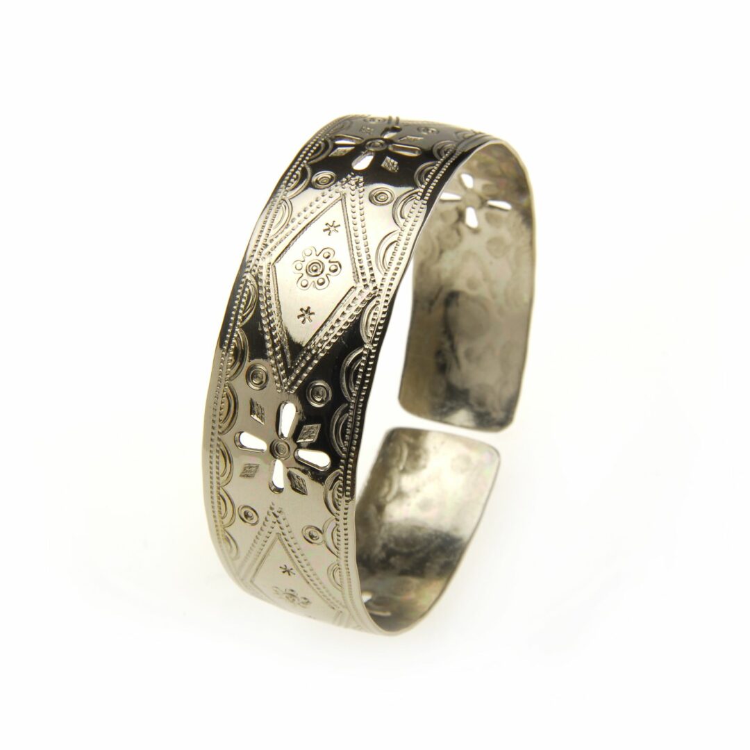 Náramok je zdobený tepaním. Je vyrobený z alpaky.