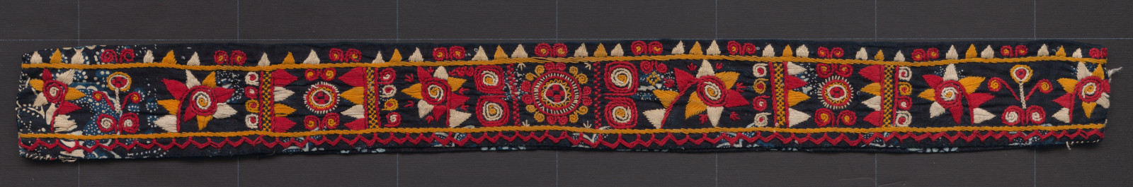 Obalok je vyšitý hrubšou bavlnenou priadzou Motívy výšivky sú šité plným, stonkovým, retiazkovým a krížikovým stehom.