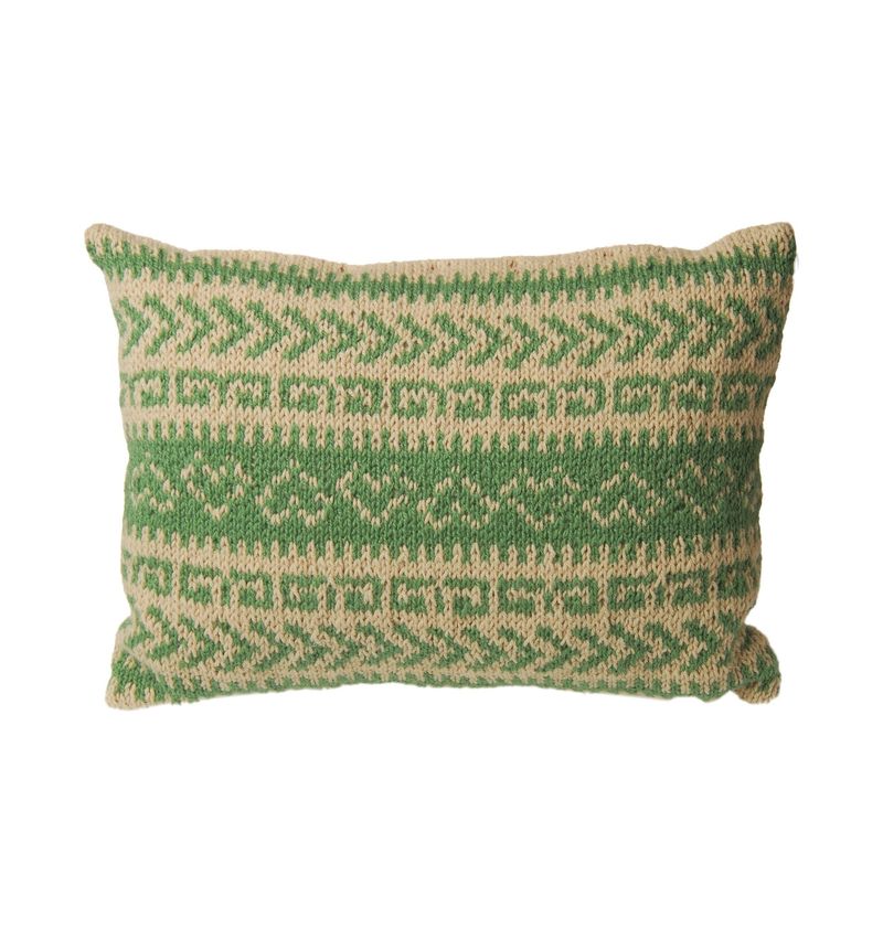 Obliečka je vyhotovená z tradičnej ovčej vlny, s vypletaným vzorom. Súčasťou je i vankúšová výplň. Je možné vypletať rôzne vzory na ľudové / farebné variácie.