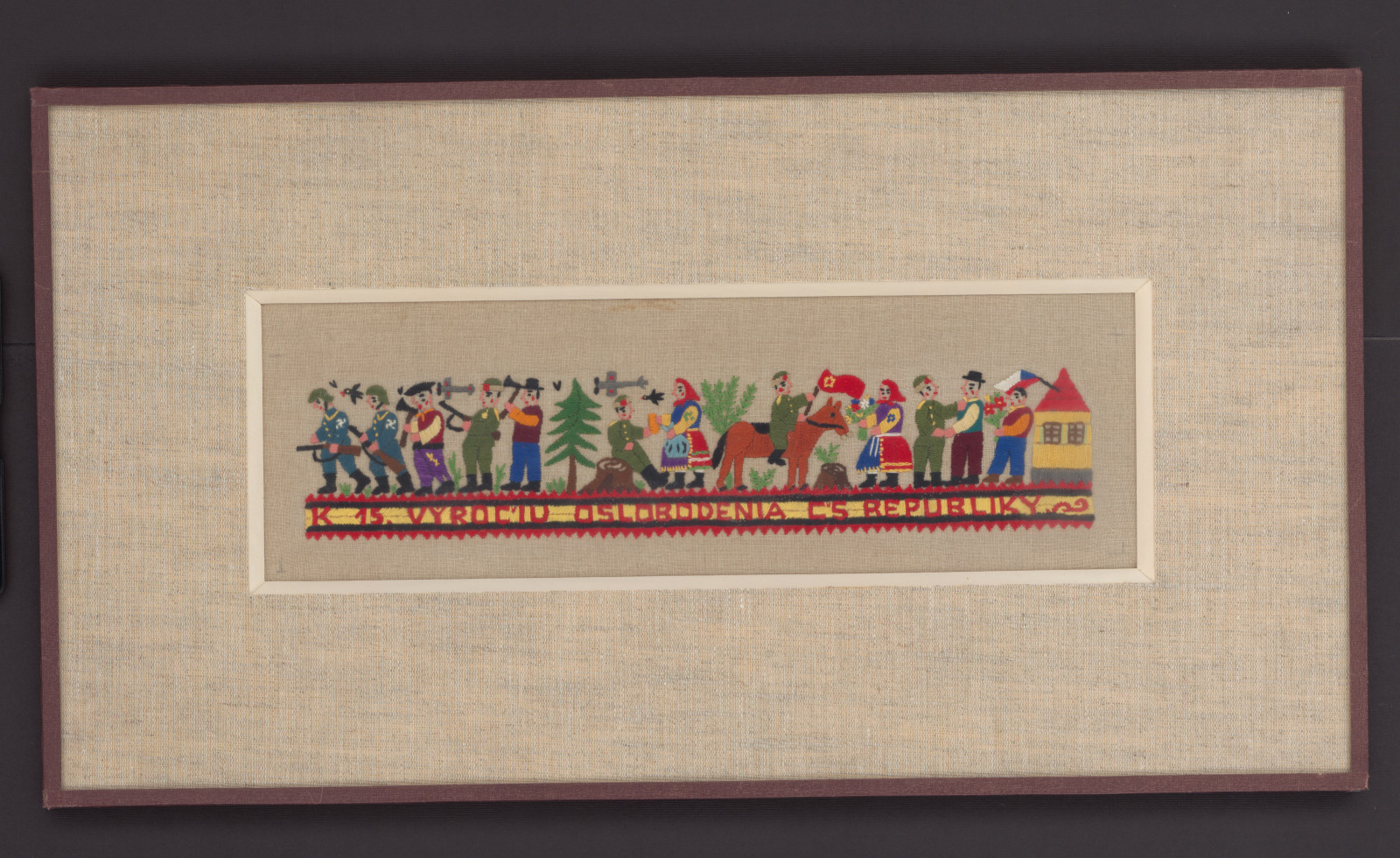 Figurálna výšivka s motívom zo života partizánov. Výšivka vyšitá na ľanovom plátne je šitá plným plochým, stonkovým a retiazkovým stehom farebnými mulinkami. Obrázok bol vyšitý k 15. výročiu oslobodenia Československej republiky. Získal III. cenu v súťaži ĽUV.