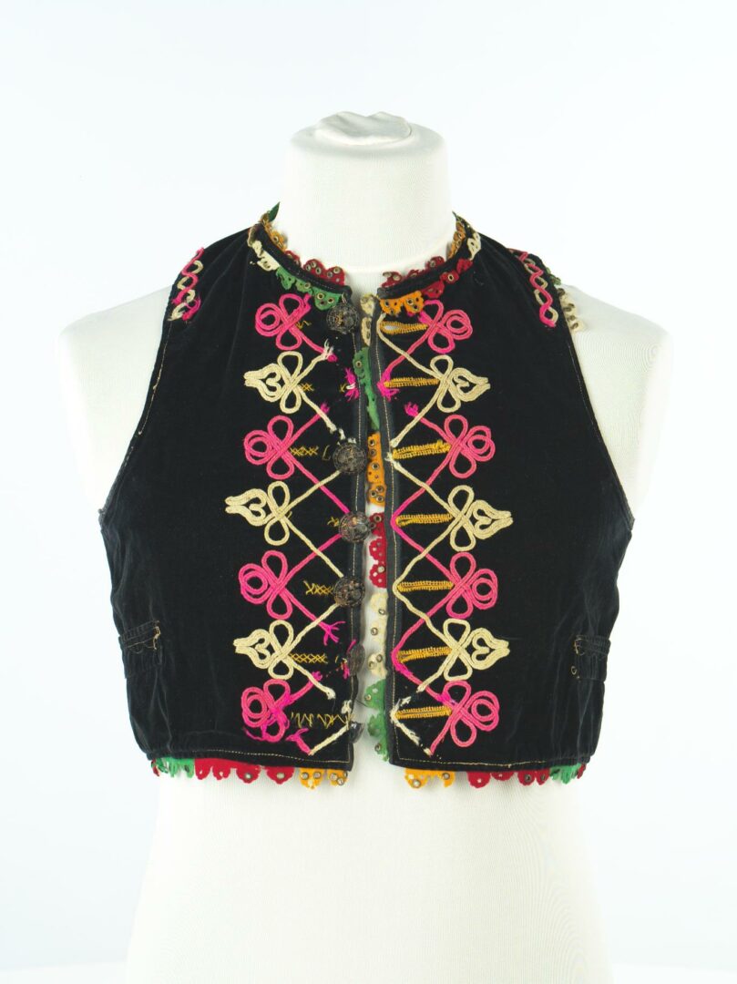 Živôtik zo zamatu je ozdobený šnurovaním a sekanými zúbkami zo súkna, do ktorých sú upevnené kovové krúžky. Súčasťou výzdoby sú rôzne sklenené gombíky našité hlavne na zadnej časti. Živôtik sa zapína na vyšité dierky a sklenené gombíky. Podšitý je pásikovým kanafasom.