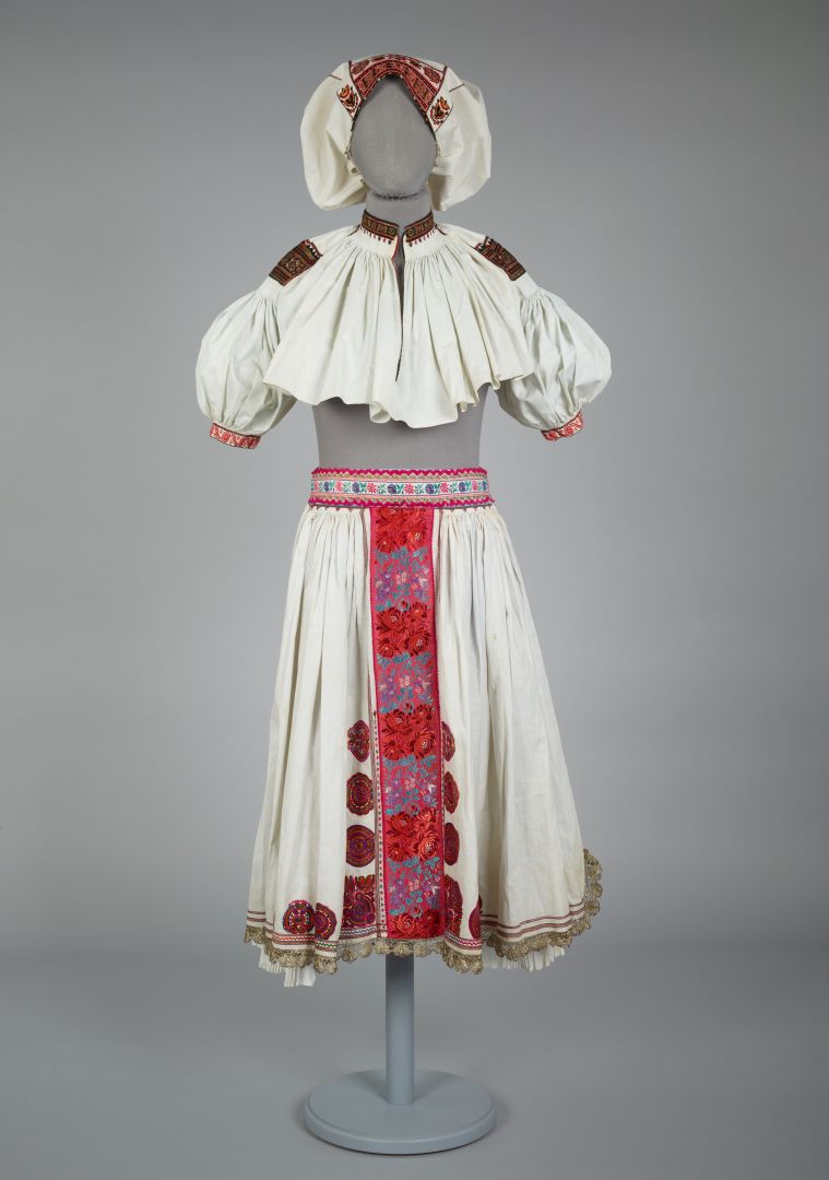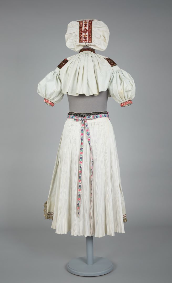 Sukňa je z 10 lichobežníkov továrenského plátna. Celá je nariasená, v páse je cez riasenie urobená výšivka a sukňa je všitá do obalka, ktorý je z lícovej strany úzky, jeho väčšia časť tvorí rub.Lícna časť obalka je vyšitá hladkovaním.
