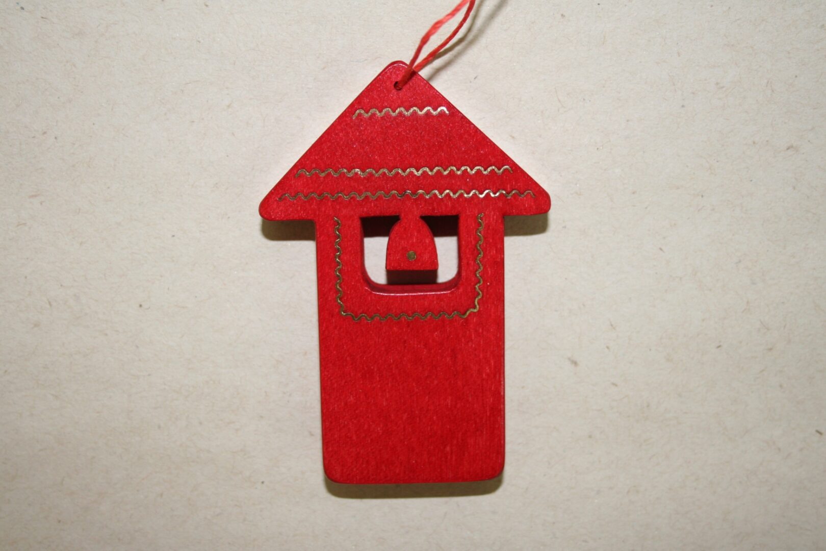 Ozdoba drevená vyrezávaná zvonica je namorená na červeno a jemne vybíjaná mosadzným drôtom. Povrch je do hladka vybrúsený.