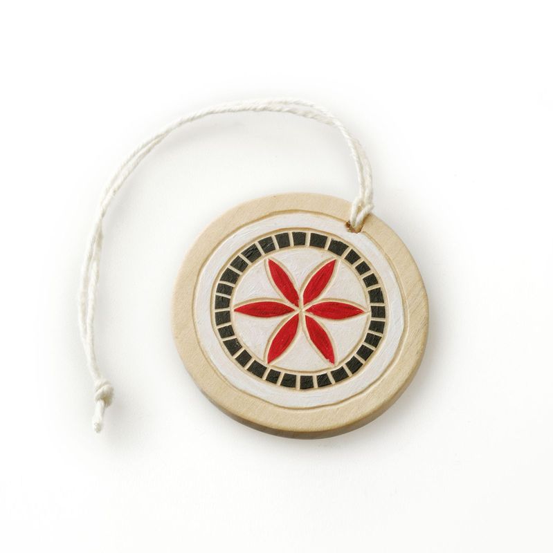 Výrobok je zhotovený z lipového dreva, je ponechaný v prírodnom prevedení a zdobený technikou linkorezu a maľbou. Dekór je inšpirovaný kyjatickou výzdobou.