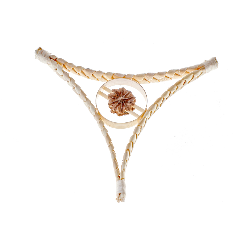 Výrobok je vyrobený z ražnej slamy a doplnkových prírodnín technikou pletenia stúh a technikou žehlenej slamy.