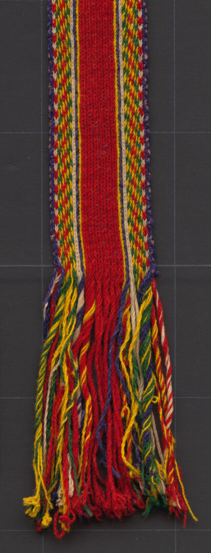 Pás z farebnej harasovej vlny je utkaný na kartičkách, konce tvoria strapce z vlnenej osnovy. Útok je pravdepodobne konopný špagát. Z literatúry je známe, že pásy vyrábali remeselníci a predávali ich na jarmokoch.