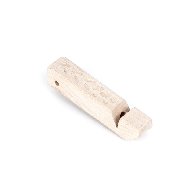Píšťalka malá je ručne vyrezávaná z rôznych drevín. Má hranatý tvar a otvor na zavesenie.