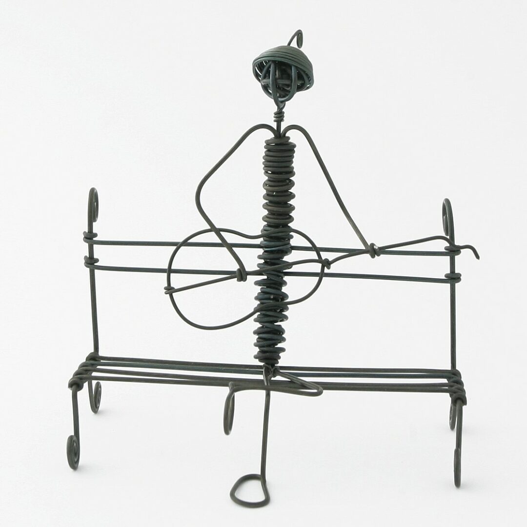sediaci na lavičke je vyrobená z počierneného drôtu