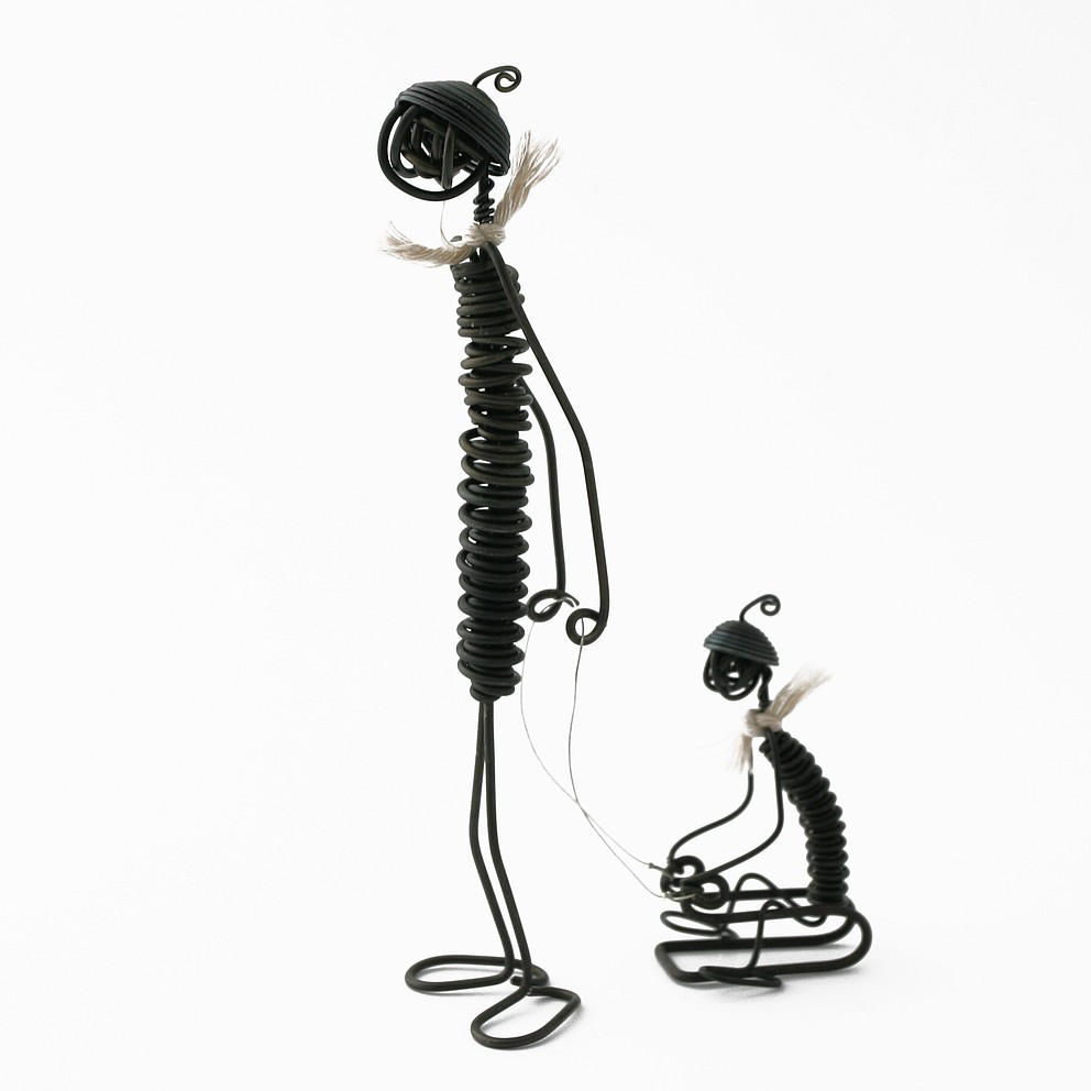 postava ťahajúca sane je vyrobená z počierneného drôtu
