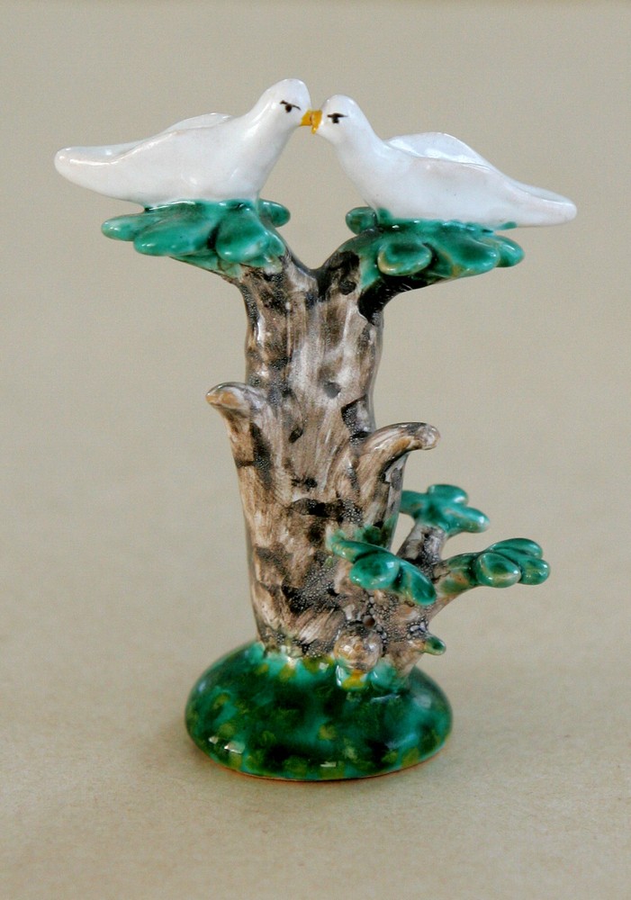 ÚĽUV / Výrobky / plastika figurálna majoliková Stromček s holubičkami